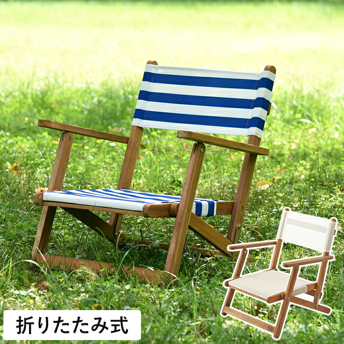 折りたたみ ガーデンチェア おしゃれ フォールディングチェア ロータイプ Nash 椅子 軽量 コンパクト アウトドア 木製 アカシア ボーダー ブルー ベージュ 青
